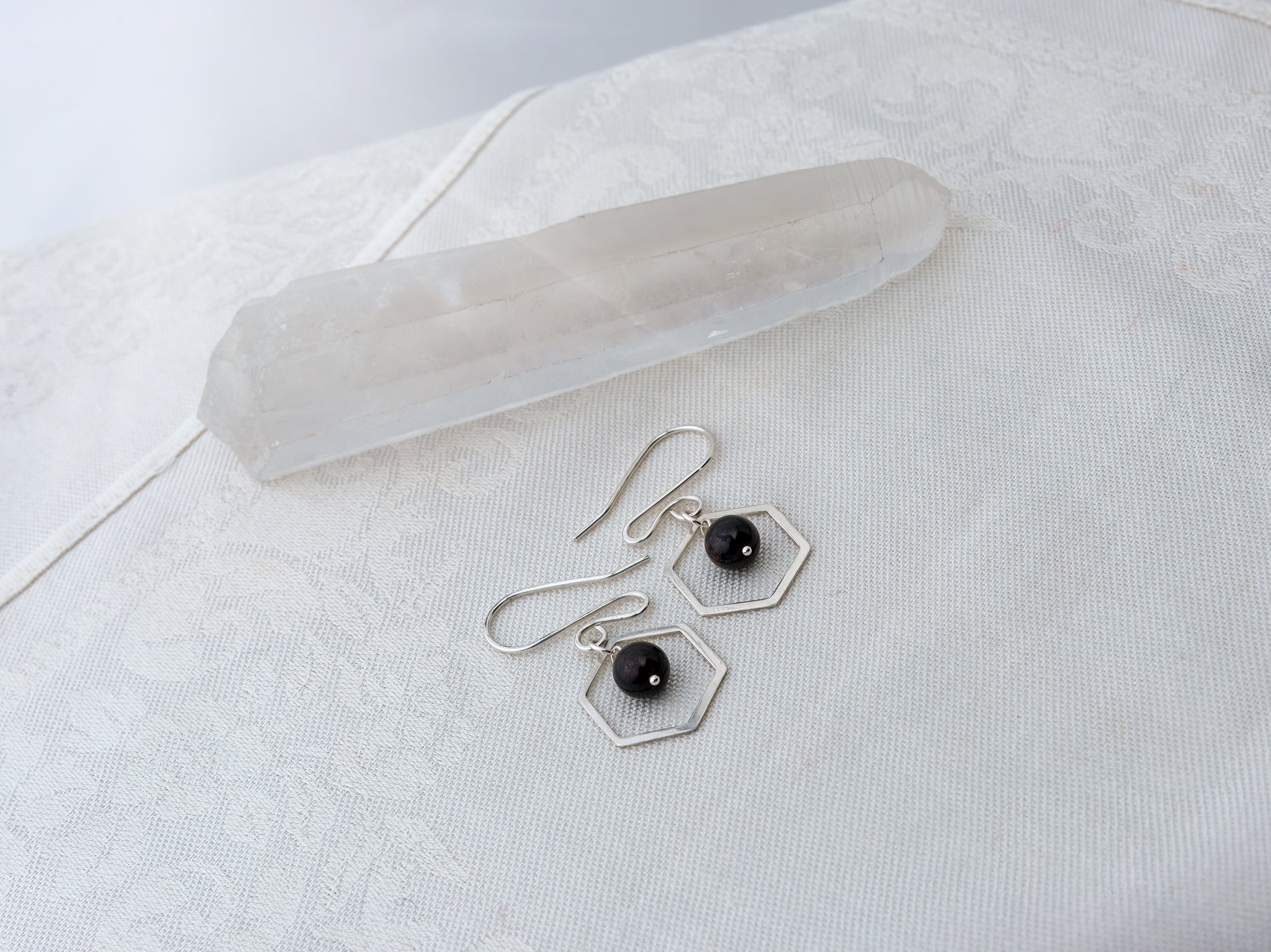 Celebrate the harmony of endings and beginnings with the Rhythm & Rise Earrings, uniquely crafted for the transformative year of 2025. These elegant earrings feature hexagonal dangles that mirror the collection’s theme of balance and progress, with earwires artfully shaped into the number '9' to emphasize the year’s significance in numerology. A vibrant red garnet bead at each center signifies passion and grounding, connecting you to the earth’s energy as you navigate the shifts ahead.