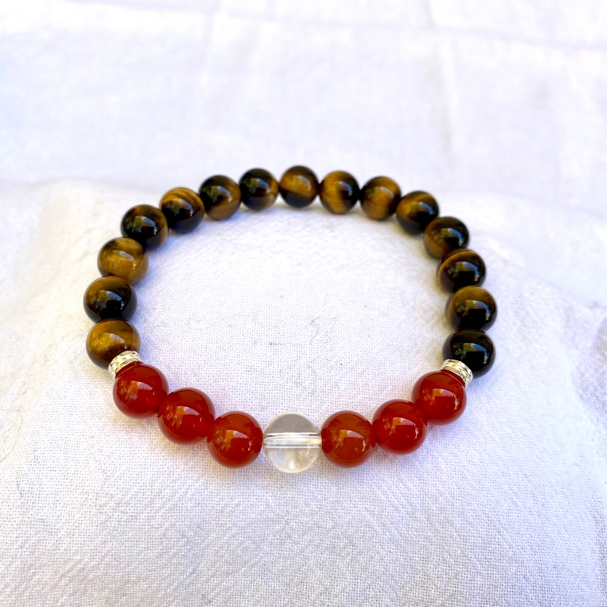 - 7 Carnelian and Crystal Quartz beads interspersed between bead spacers represents spirituality and inner wisdom, fostering intuition and personal potential. Chakra-wise, it relates to the crown chakra, promoting mental clarity and spiritual insight. This enhances self-assurance and confidence.